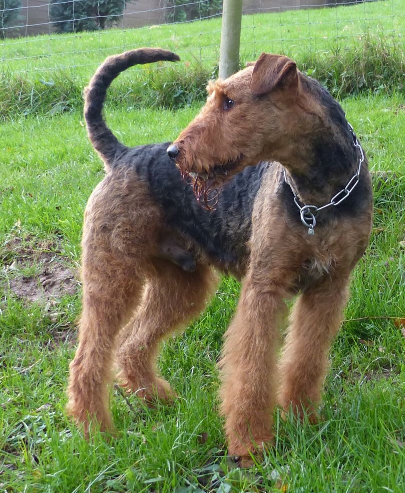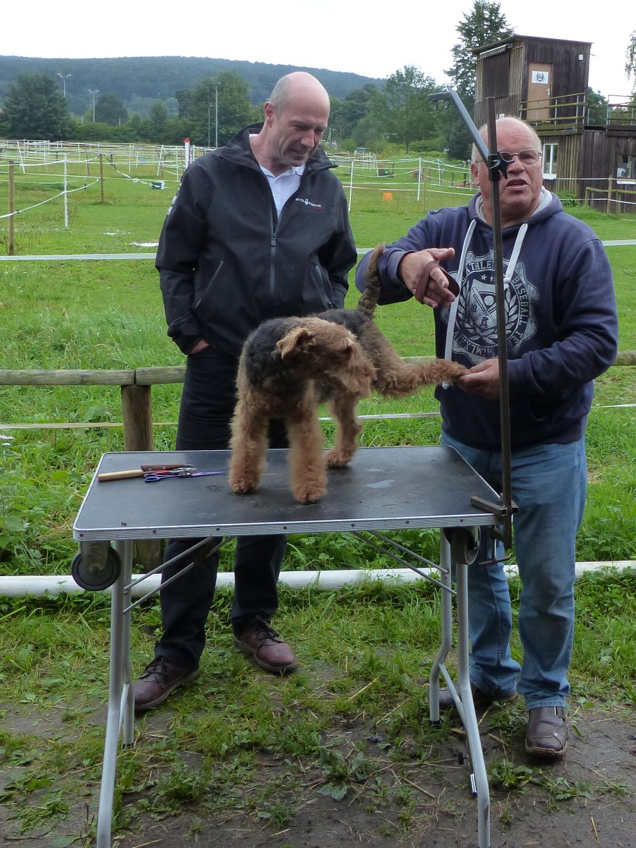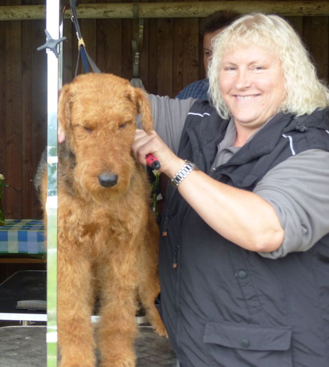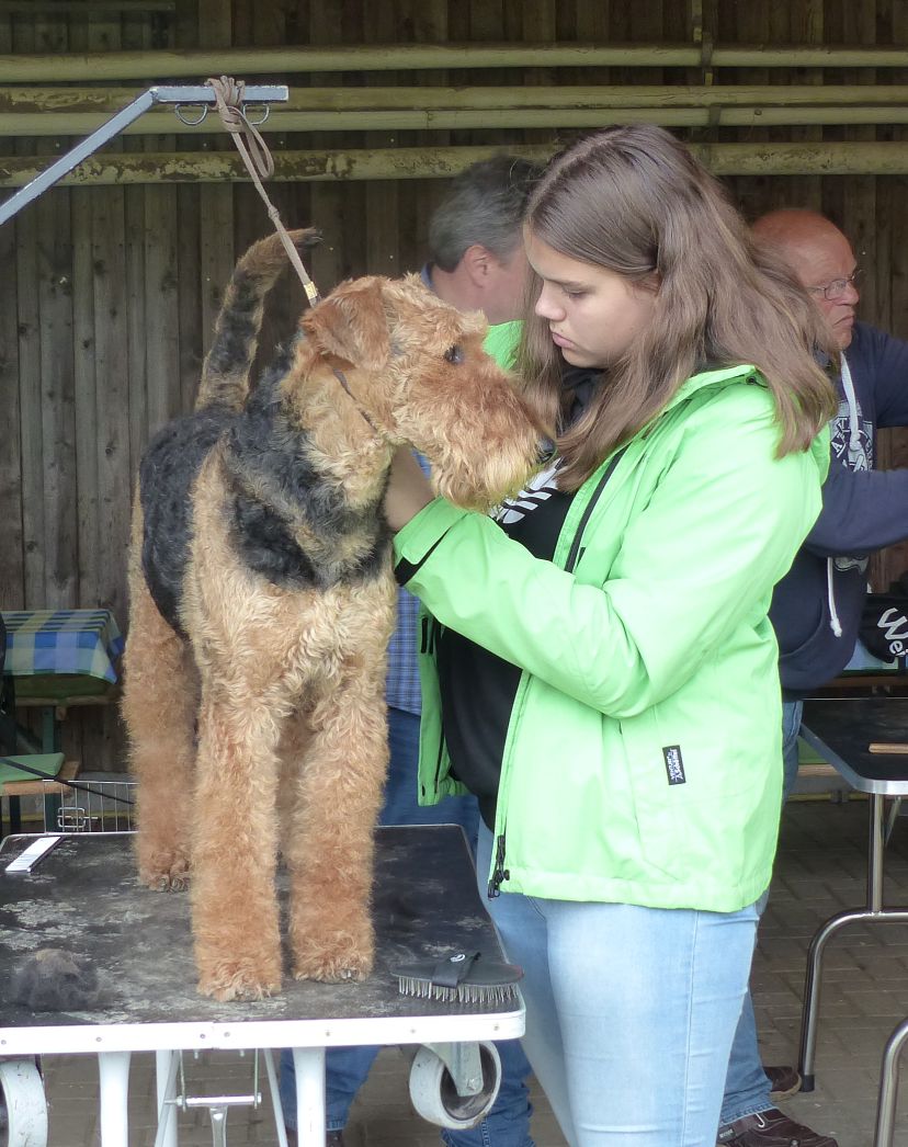 Bei Familie V soll ein kleines Airedale Mädchen aus dem V Wurf einziehen. Deshalb wollten sie als Gäste auch dabei sein. Eine prima Idee, fand ich. Wo kann man sich besser informieren, als bei vielen Airedaleinfizierten Hundebesitzern.