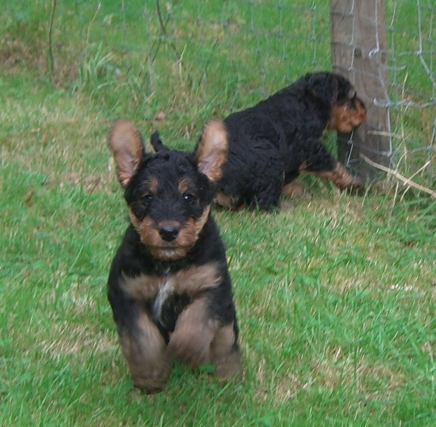 Momo müde und zufrieden in typischer Airedale- Schlafposition