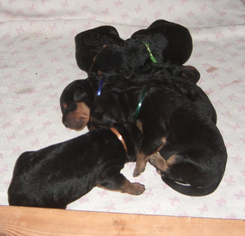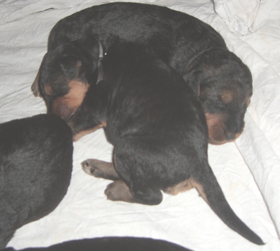 21.10.2012: Die Welpen verbringen ihre Tage mit Trinken und Schlafen. Alle