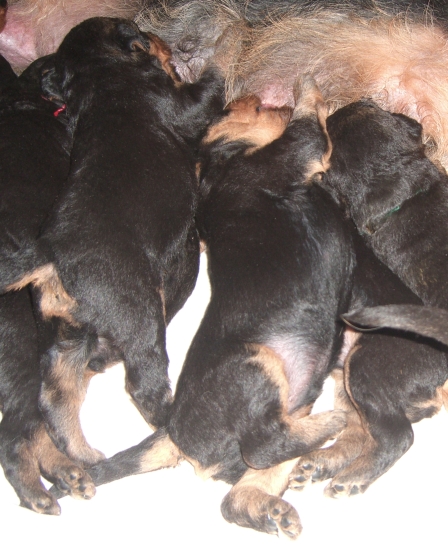 groß. Die Welpen wollen an die Milchbar. Aber im Stehen klappt das noch nicht