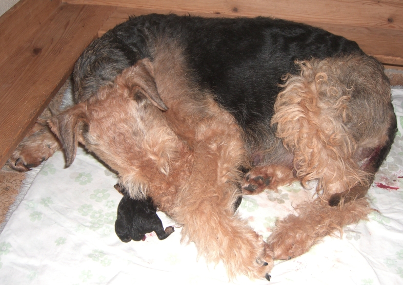 Der erste Welpe war um 1.45 Uhr geboren. Um 8.00 Uhr waren 5 kleine Matzes und 3