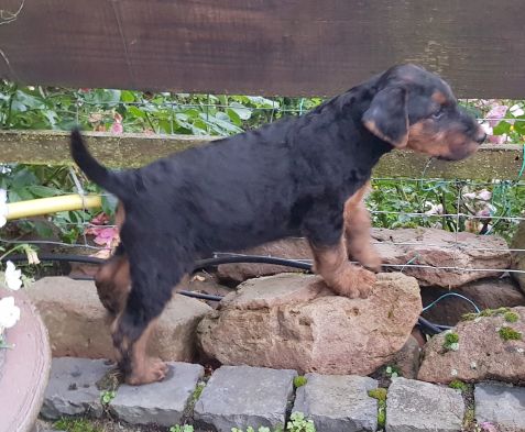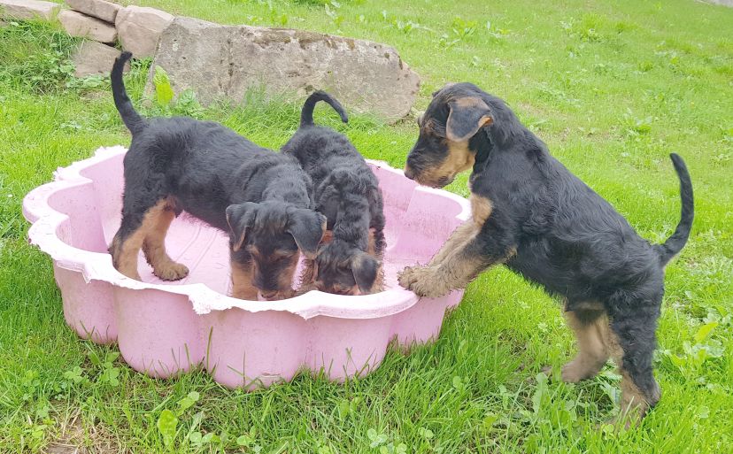 Plötzlich sind aus den kleinen Wuschels richtige Airedale Terrier geworden, die