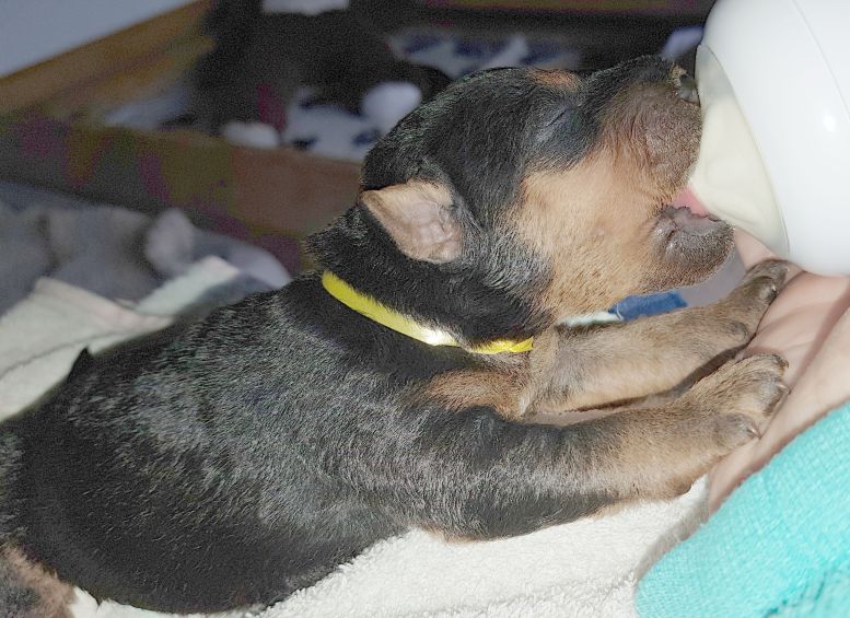 Emma produziert, vermutlich in Folge des Kaiserschnitts nicht so viel Milch. Deshalb gibt es immer mal einen Schluck aus der Pulle dazu