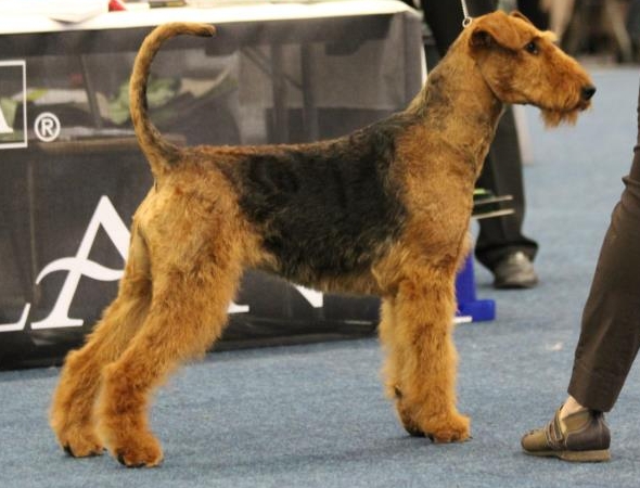 13.10.2012: Bundessiegerausstellung in Dortmund. Diesmal sind wir, wieder einmal sehr, sehr früh am Morgen, zu fünft aufgebrochen (Birte, Andreas, Lilli, Momo und ich). Es waren 24 Airedales gemeldet, 22 waren am Start. Momo musste zuerst in den Ring und konnte die Jugendklasse für sich entscheiden. Wir haben uns riesig gefreut. Später war Lilli dran. Sie wurde in der offenen Klasse Zweite. Bis dahin fand ich ja noch alles so in Ordnung. Als ich dann ganz selbstverständlich mit Momo in den Wettbewerb um den Rassebesten Airedale in den Ring gehen wollte, sagte mir der Ringstuart: "Nein, Sie nicht!" Das konnte ich zunächst gar nicht verstehen. Als dann die Ergebnisse angeschrieben wurden, war es klar. Der Richter Johan Juslin aus Finnland hatte Momo mit SG beurteilt. Sie hatte also zwar die Jugendklasse gewonnen, aber weder eine Anwartschaft, schon gar nicht den Titel Bundesjugendsiegerin erhalten. Na ja, muss man nehmen, wie es ist. Wir befanden uns allerdings in guter Gesellschaft. Von den 22 gestarteten Airedales wurden 9 mit V beurteilt (da war ich dann schon stolz, dass Lilli dabei war), 8 mit SG und zwei sogar mit G. Die Aussteller waren begeistert, wie man sich unschwer vorstellen kann.