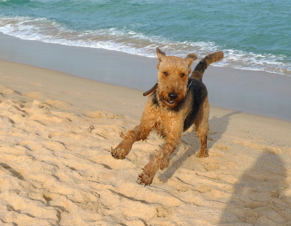 dort hin, denn Frauchen trimmt jede Woche an mir rum. Die Leute, die Airedales