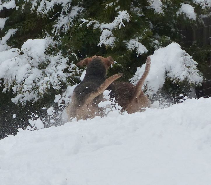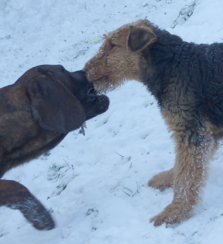 In diesem Jahr hat der Schnee nicht so lange auf sich warten lassen. In Helsa ist alles tief verschneit. zeit für ausgiebige Spaziergänge und wildes Spiel im Garten. Die Hunde sind ganz aus dem Häuschen.