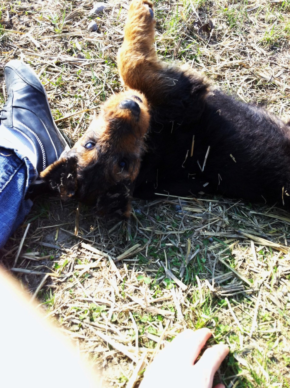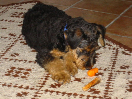 anbei ein paar Bilder von Kylo, der unser Leben umgekrempelt hat. Jetzt ist zum Glück die anstrengende Phase vorbei, wo wir dauernd damit beschäftigt waren, ihn vom Pfützen und Haufen machen im Haus ab zu halten. Er liegt jetzt auch oft ruhig herum und wächst. Aber wenn seine Zeit gekommen ist, dann wird er zum Schelm und keine Schnürsenkel und Socken sind vor ihm sicher. Plastikflaschen machen ihn wild und sein Anhänger wird mit vollem Schwung besetzt. Er kann sich richtig austoben und macht uns viel Freude.
