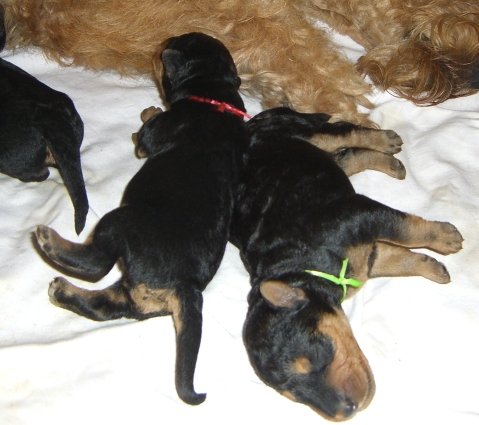 so purzeln die Welpen ganz schön herum. Wenn Mama Angel naht, werden sie ganz