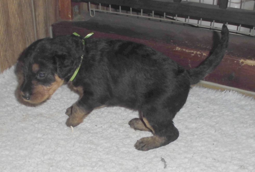 01.12.2013: Die Welpen werden immer aktiver. Sie beschäftigen sich mit allem Neuen und sind jetzt schon recht flott auf ihren Beinchen unterwegs.