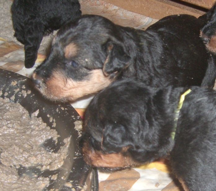 Seit Beginn dieser Woche bekommen die Welpen ein erweitertes Futterangebot.