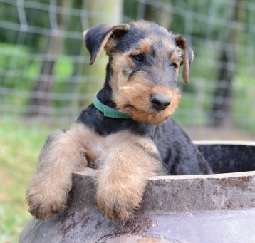 26.08.2014: Die Welpen haben ihren ersten Friseurtermin hinter sich. Und siehe da, plötzlich sehen alle schon wie richtige kleine Airedales aus.