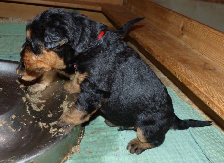 ihren Beinchen unterwegs und haben den Welpenraum für sich erobert. Das Futter