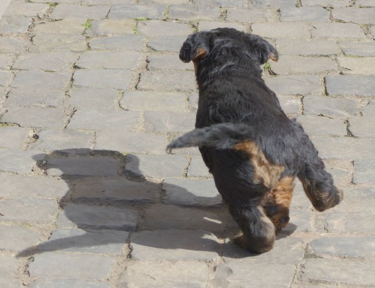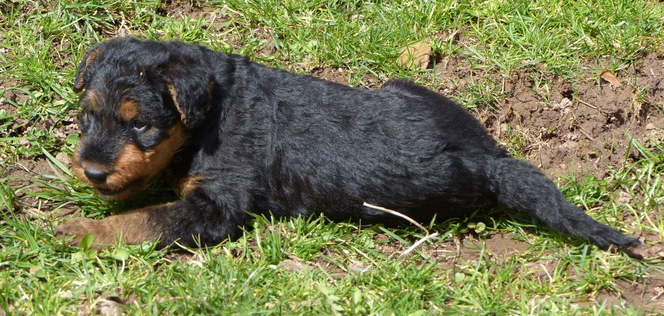 Die Welpen haben sich bestens entwickelt und dank des Super Wetters verbringen sie mittlerweile viel Zeit im Freien. Es ist unglaublich, wie sie sich von einem auf den anderen Tag weiterentwickeln. Ich kann mich immer nur schwer von ihnen losreißen.