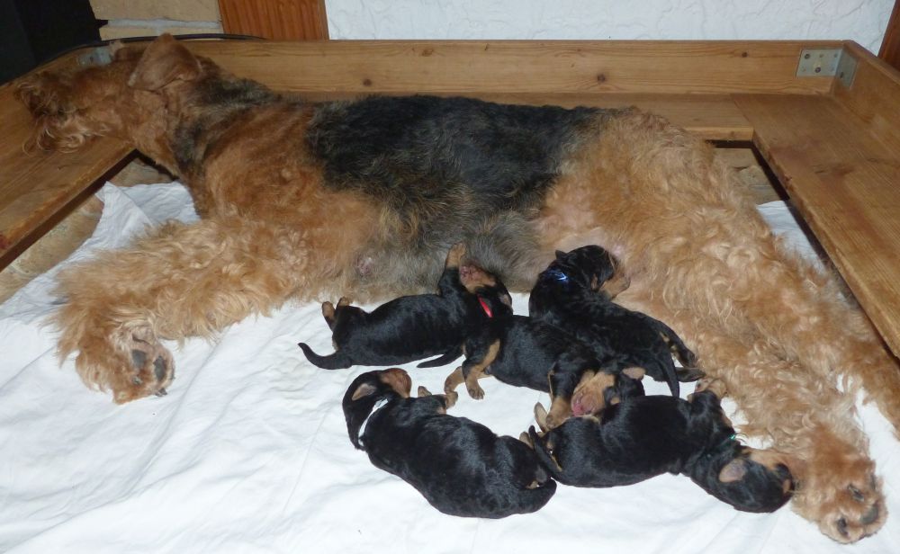 Auch das funktioniert schon. Die typische Airedale Schlafhaltung
